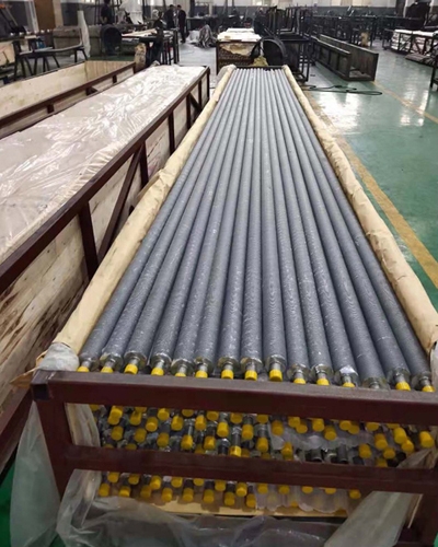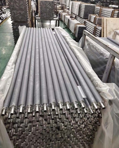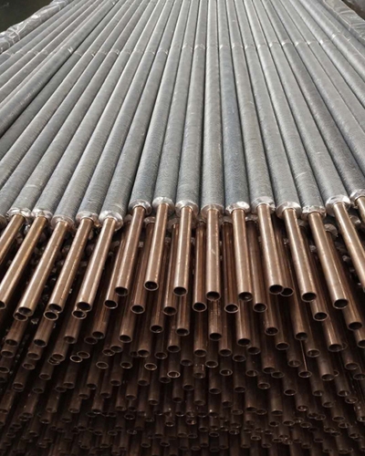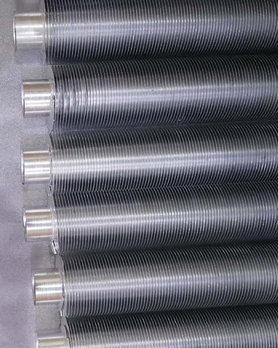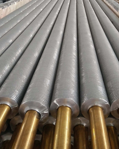 擠壓翅片管,又稱雙金屬軋制翅片管(代号DR),雙金屬軋片管是可以承受腐蝕的管子,完全克服瞭(le)L 型繞片管的缺點。雙金屬軋片管的内外管可以分别選材,内管根據熱流體腐蝕情況和壓力選定,如碳鋼、不鏽鋼、合金鋼、黃銅等。外管可選用既有較好的延展性,可以承受大氣腐蝕能力強,又有良好的傳熱性能的金屬,一般用鋁和銅,經過軋制内外管可以完全緊密結合在一起。雙金屬軋片管除可用於(yú)管内爲高腐蝕性流體外,還可用於(yú)濕式空冷器以抵管外側的腐蝕。優點是可以承受腐蝕性能好,使用壽命長,傳熱效率高,壓降小,翅片整體性和剛度高,由於(yú)翅片牢固,不易變形,可用高壓水清洗。